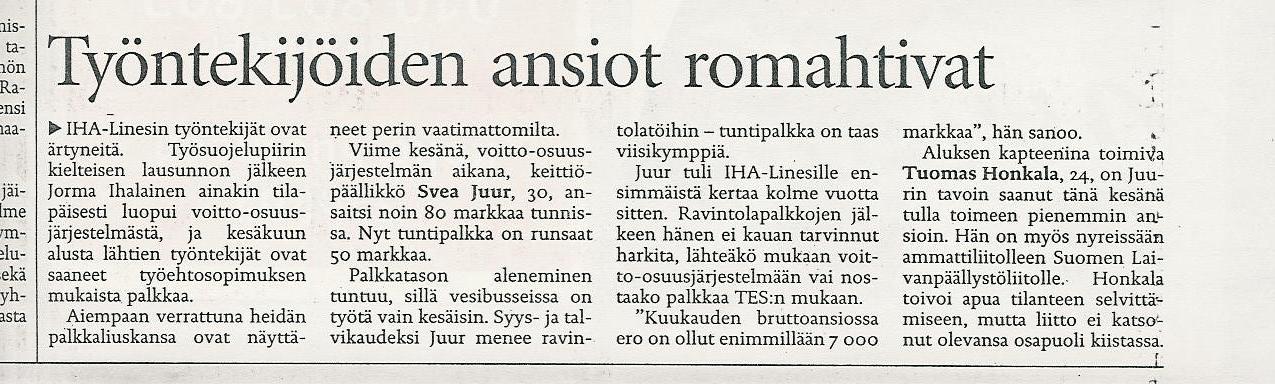 Helsingin Sanomien politiikantoimituksella ja lukijoilla oli ihmettelemistä erikoisessa tilanteessa, jossa yhtiön piti laskea työntekijöidensä palkkoja viranomaisten ollessa epätietoisia lain tulkinnasta. Myös laivaväkeä oli haastateltu omituisesta tapauksesta, joissa palkkoja piti alentaa. Aikanaan muiden muassa kalastusaluksilla yleinen palkanmaksutapa voitto-osuutena aluksen tuotosta oli erityisen tarkastelun ja mielenkiinnon kohteena. Laivanpäällystöliitossa arveltiin, että "kun keskitetyt palkkaratkaisut ovat väistyneet, ollaan taas menossa siihen suuntaan".