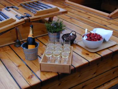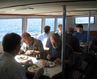 På små fartyg, som Merisaraste, finns ingen egentlig restaurang. Därför kan man ta med egen mat och dryck till Merisaraste om man vill. Lika enkelt kan man sätta sig ned vid ett färdigt dukat bord. Vi samarbetar med en cateringfirma, som gärna hjälper er enligt era behov. Menyförslag för småbåtarna >>