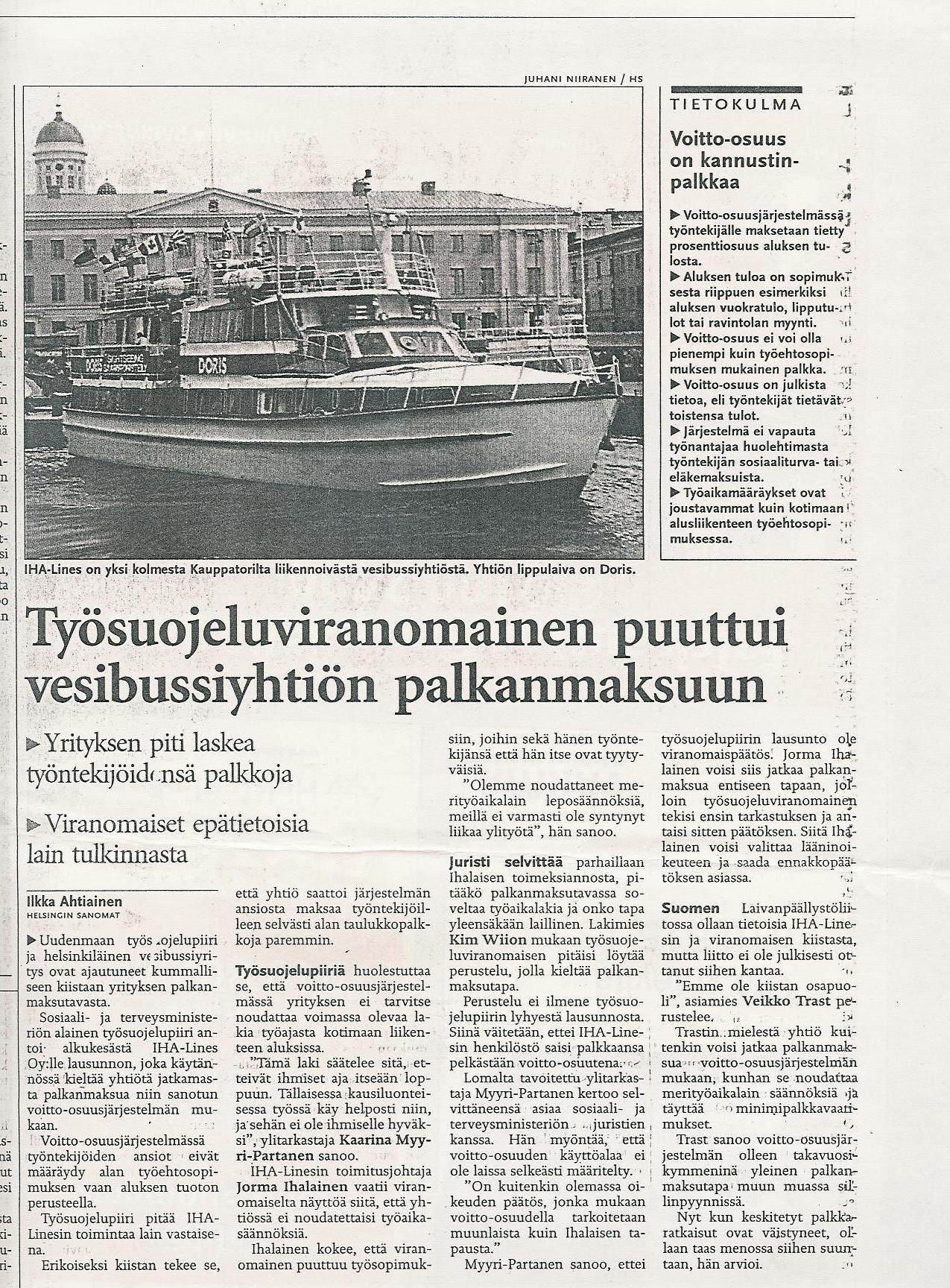 Helsingin Sanomien politiikantoimituksella ja lukijoilla oli ihmettelemistä erikoisessa tilanteessa, jossa yhtiön piti laskea työntekijöidensä palkkoja viranomaisten ollessa epätietoisia lain tulkinnasta. Myös laivaväkeä oli haastateltu omituisesta tapauksesta, joissa palkkoja piti alentaa. Aikanaan muiden muassa kalastusaluksilla yleinen palkanmaksutapa voitto-osuutena aluksen tuotosta oli erityisen tarkastelun ja mielenkiinnon kohteena. Laivanpäällystöliitossa arveltiin, että "kun keskitetyt palkkaratkaisut ovat väistyneet, ollaan taas menossa siihen suuntaan".