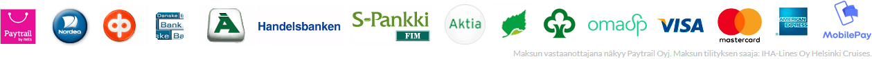 Tämän lippukaupan teknologian on toteuttanut ja turvannut Bokun, TripAdvisor LLC:n omistama kansainväliseen lippujenmyyntijärjestelmään erikoistunut yhtiö. Lippukauppa toimii Bokunin järjestelmässä ja se näytetään tällä sivulla Bokunin turvallisesta kansainvälisestä palvelujen myyntijärjestelmästä. Kaikki tässä lippukaupassa tehdyt maksutapahtumat turvaa ja hoitaa suomalainen Paytrail Oyj. Maksunvälityspalvelun toteuttaja ja maksupalveluntarjoaja Paytrail Oyj (2122839-7) toimii yhteistyössä suomalaisten pankkien ja luottolaitosten kanssa. Paytrail Oyj näkyy maksun saajana tiliotteella tai korttilaskulla ja välittää maksunne IHA-Linesille. Alla olevien laivalippujen maksutapoina käyvät suomalaisten pankkien verkkomaksut, luottokortit Visa, MasterCard ja American Express sekä MobilePay. Lippukaupassa on näkyvillä ja ennakkoon ostettavissa vain osa päivän tuotteista ja palveluista. Tervetuloa Kurkijärven Majalle.